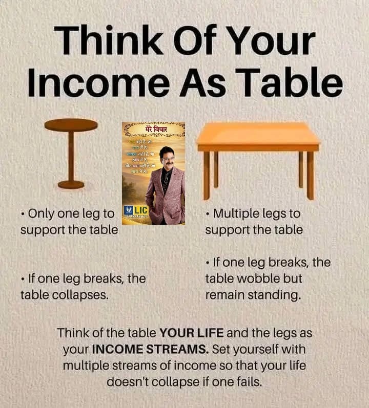 Just Compare These Two Table As Your Income ......π Table is your life and leg is your Income streams.π Always set yourself with multiple streams of income so that your life doesn't collapse if one leg fails.....ππ To Know more about our provided services click on given link... https://mydc.in/?a=9820143309-10 contact me for more information.. https://saathi.licindia.co.in/s/shailesh-joshi/81280925 our financial adviser / best advisor in Mumbai / health insurance / corporate medical Insurance #LICPolicy2025 #insurancelearners #licjeevanumang #LICInvestment #LICScheme #lifeinsurancechallenge #LICPOlicyHolders #lifeinsurancebroker #licadvisor #LifeInsuranceAwarenessMonth #licplanning #licplan #financial Mr. Shailesh Joshi Mobile no : 9820143309 E Mail: krishnainvestments.org freedom #licfdplan #licposters