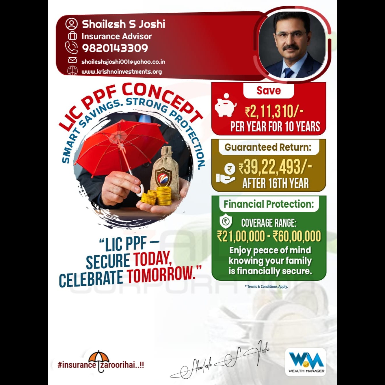 LIC'S PPF concept Guaranteed retun of ₹ 39, 22, 493 after 16th year by just saving ₹ 2, 11, 310 per year for 10 yrs...👍👍👍 financial protection: coverage range ₹21, 00, 000 to 60, 00, 000 enjoy peace of mind. knowing your family is financially secured. To Know more about our provided services click on given link... https://mydc.in/?a=9820143309-10 contact me for more information.. https://saathi.licindia.co.in/s/shailesh-joshi/81280925 our financial adviser / best advisor in Mumbai / health insurance / corporate medical Insurance #LICPolicy2025 #insurancelearners #licjeevanumang #LICInvestment #LICScheme #lifeinsurancechallenge #LICPOlicyHolders #lifeinsurancebroker #licadvisor #LifeInsuranceAwarenessMonth #licplanning #licplan #financial Mr. Shailesh Joshi Mobile no : 9820143309 E Mail: krishnainvestments.org freedom #licfdplan #licposters