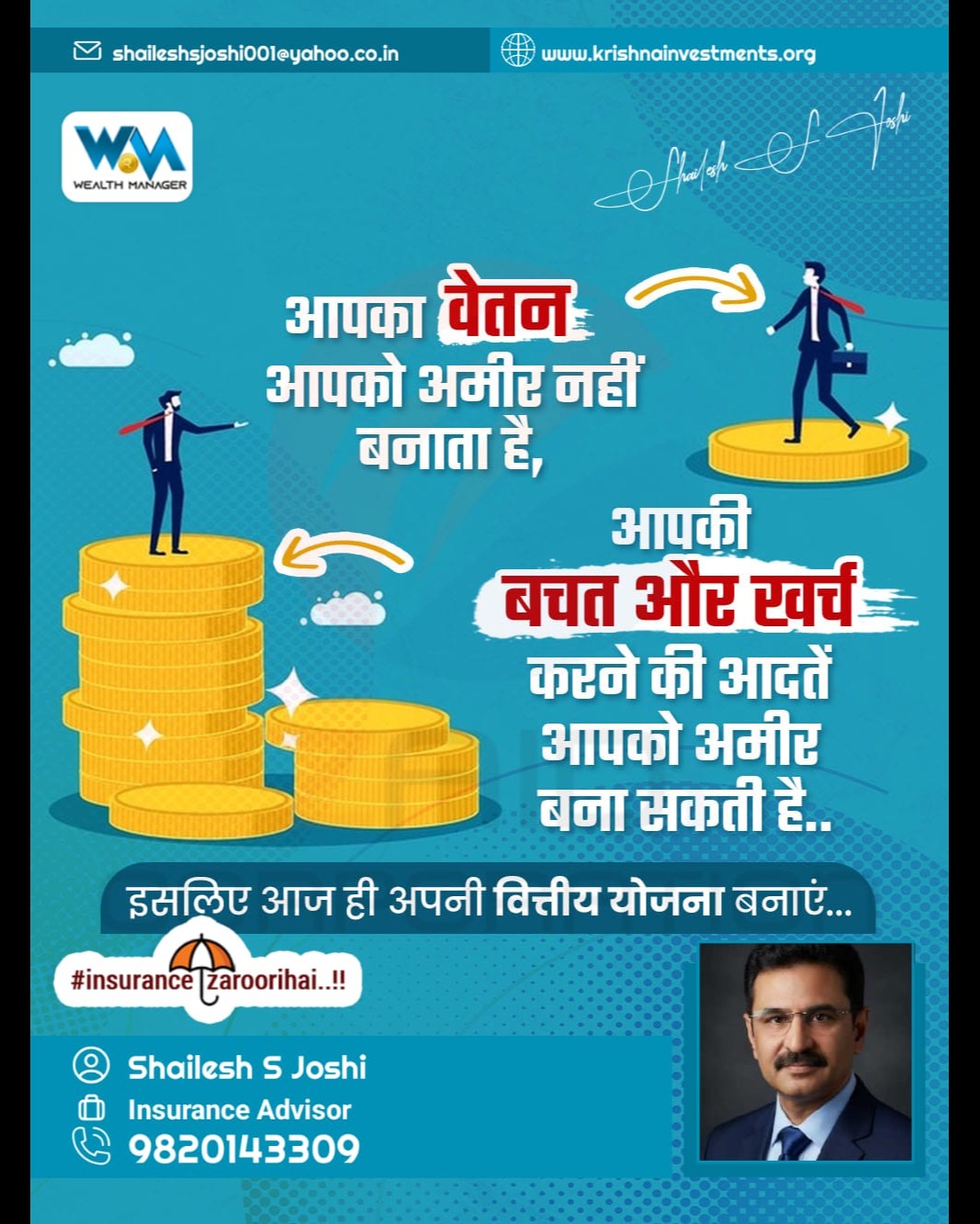 Not your salary but Habit of your expense and savings make you poor or rich.......👍👍 I can help you to plan your Finance for future According to your needs and requirement.... To Know more about our provided services click on given link... https://mydc.in/?a=9820143309-10 contact me for more information.. https://saathi.licindia.co.in/s/shailesh-joshi/81280925 our financial adviser / best advisor in Mumbai / health insurance / corporate medical Insurance #LICPolicy2025 #insurancelearners #licjeevanumang #LICInvestment #LICScheme #lifeinsurancechallenge #LICPOlicyHolders #lifeinsurancebroker #licadvisor #LifeInsuranceAwarenessMonth #licplanning #licplan #financial Mr. Shailesh Joshi Mobile no : 9820143309 E Mail: krishnainvestments.org freedom #licfdplan #licposters
